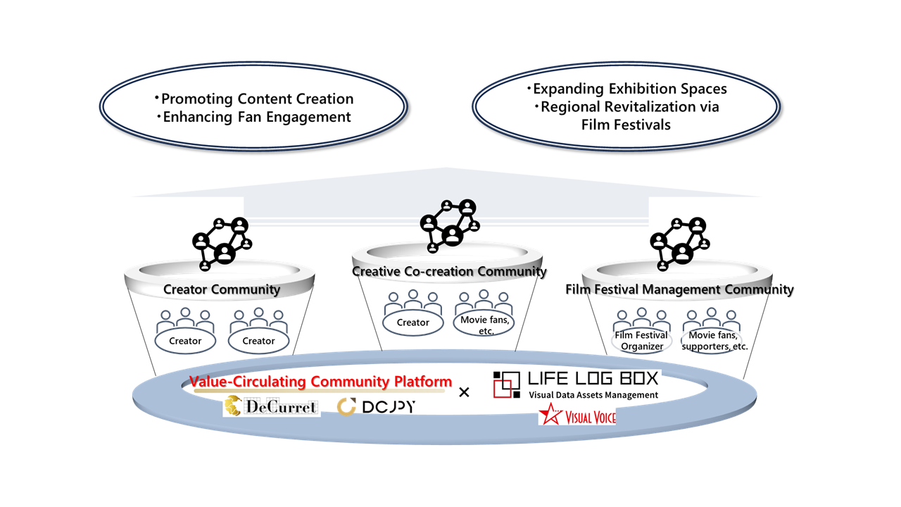 As a next step, we plan to conduct pilot projects demonstrating the use of community services and DCJPY in Visual Voice’s digital asset management service, “LIFE LOG BOX,” and in film festival operations, with a target date of 2027. Through these collaborations, we aim to create a world where creative activities are funded through community-based fundraising, enabling teams to collaborate on content production and share resources, while completing works by sharing the creative process with fans. Even after work is completed, it will be possible to maximize economic value through the community by expanding awareness through sharing and promotion, co-creating screening venues, and expanding the work’s economic ecosystem through fan-created content. Furthermore, we will move forward with initiatives that encompass various community-building efforts, such as contributing to regional revitalization by establishing collaborative frameworks for managing local film festivals and preserving film culture through the restoration and digital archiving of classic films.